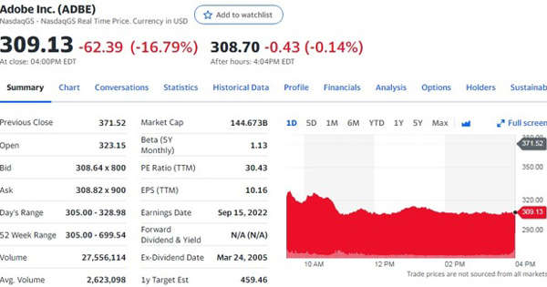 In particular, unlike competitors’ products that only work on desktops and apps, it worked on various platforms simultaneously based on browsers, allowing it to work anywhere. On top of that, Figma spread rapidly among designers because it was easier to use and collaborate than Adobe.This was a headache for rival Adobe. In the end, Adobe decided to take over Figma.Adobe announced on the 15th that it would acquire Figma for $20 billion. Adobe’s stock price plunged 16.79% from the previous trading day to $309.13 on the New York Stock Exchange.