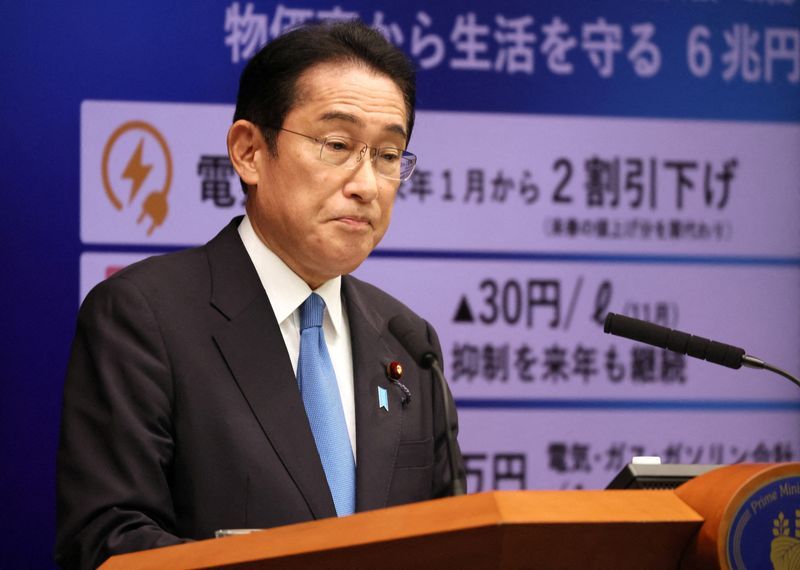 TOKYO (Reuters) – Public approval ratings for the government of Japan’s Prime Minister Fumio Kishida touched a new low in one opinion poll and clung near lows in another, hit by his party’s ties to a controversial church and doubts about a massive spending plan. Read full story