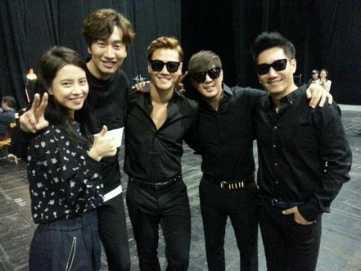 The picture features “Running Man” cast members Ji, Kim Jong-kook, Haha, Lee Kwang-soo and Song Ji-hyo posing for the camera after a fan meeting in Hong Kong on Saturday.