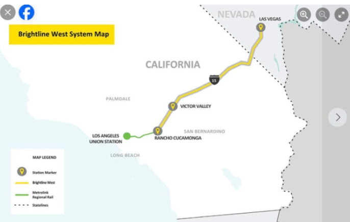 According to railroad company Brightline West, construction on the 351-kilometer-long high-speed railway from Rancho Cucamonga, a city in San Bernardino County next to Los Angeles, California, to the south of the Las Vegas Strip, Nevada officially began that day.