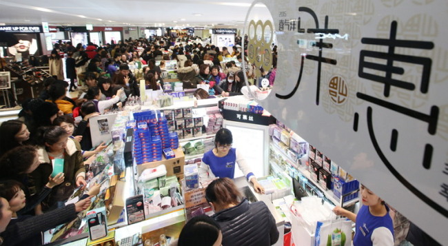 A Lotte duty-free shop in Seoul is crowded with Chinese tourists on Tuesday. (Yonhap)