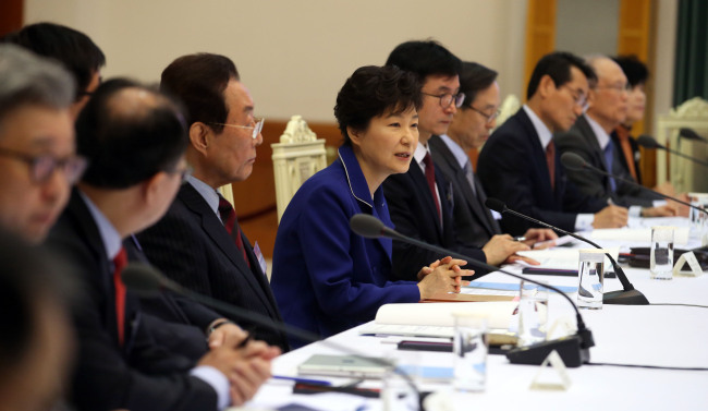 | President Park Geun-hye speaks at a meeting with the unification preparatory committee at Cheong Wa Dae on Monday. (Yonhap) |