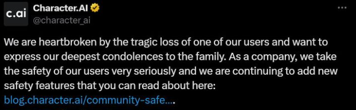 In response, Character.AI said in a statement, “We are deeply saddened by the tragic loss of users and express our deepest condolences to the bereaved families,” adding, “We will introduce changes to reduce the likelihood of users under the age of 18 accessing sensitive content.”