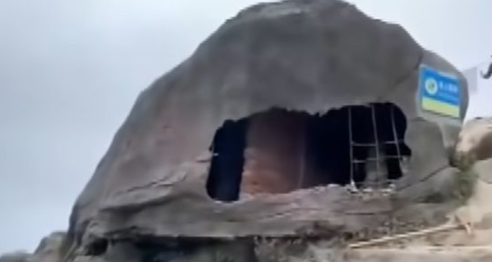 It turns out that the rock located on Mt. Utong in Shenzhen, southern China, was an artificial structure with hollow parts. Mount Utong, which is 944 meters above sea level, is the highest mountain in Shenzhen, and is a tourist attraction that countless visitors visit every year for hiking. As the huge rock lies on the first peak of the mountain, any hiker who climbs to the top used to take a photo there.