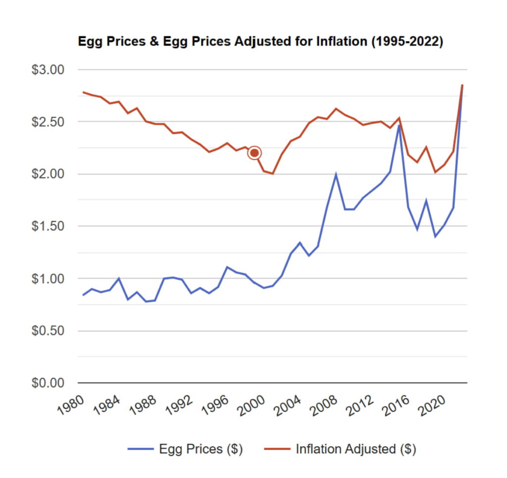 Industry officials believe that egg inflation could continue for a while. The U.S. Department of Agriculture recently announced that egg production in the U.S. will be lower than expected next year. “Egg is still a relatively inexpensive source of animal protein and an easily replaceable food,” Bloomberg said. “Demand tends to be solid even if prices rise.” Rising U.S. egg prices