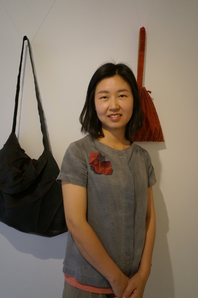 Jo combines traditional Korean sewing techniques and folding methods to create unique designs for modern handbags and accessories.