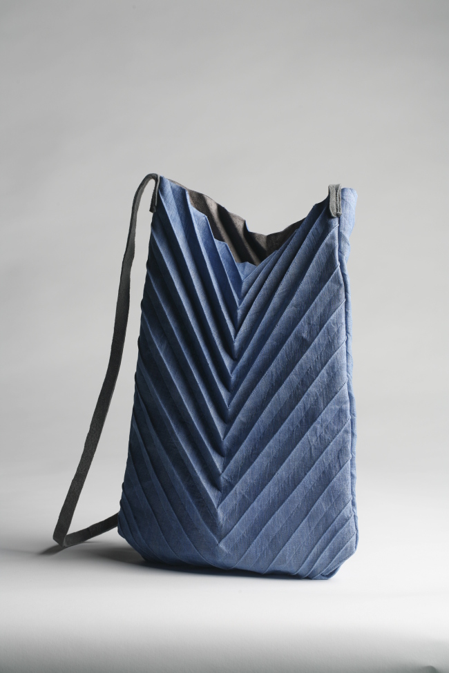 Her brooches and handbags are works of art. She stitches carefully calculated folded lines, creating delicate geometric lines that sometimes resemble accordion pleats or natural leaf patterns. Jo also uses naturally dyed textiles such as ramie, silk and cotton to prevent allergies from chemical materials.