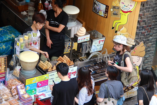 “Ddongbbang is a soft, cake-like bread that is shaped like a pile of poo and is stuffed with various fillings, the most popular being red bean paste,” said one ddongbbang street vendor. “It’s something that is comical and not only fun to eat, but also delicious. Many tourists seem to enjoy it because it is so quirky and unique.”