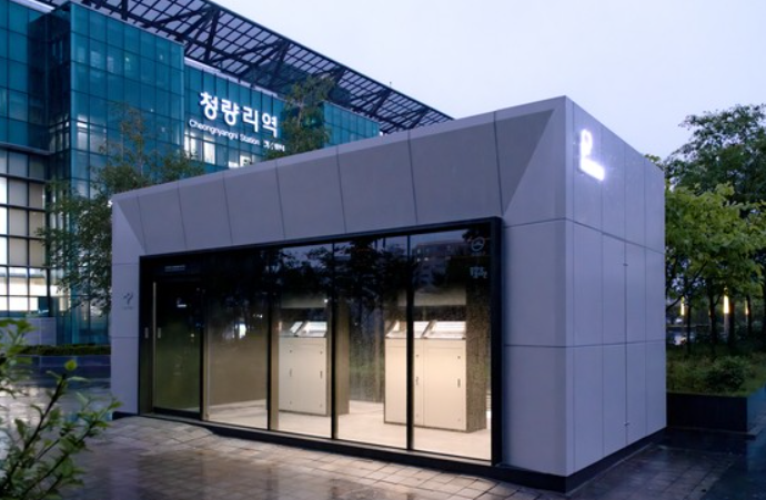 The design of the smoking booth is designed with a core value of “harmony with the urban environment.” It uses achromatic colors to blend naturally with street buildings and walking environments, and blocks the eyes of users and pedestrians with translucent glass and restrained structure.