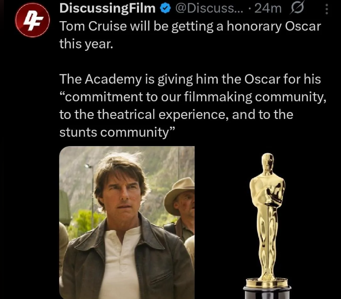 The Academy Award for Achievement is given to persons who have made special contributions to the field of film arts and science. “Tom Cruise inspired us all with his dramatic experience in film production, audience, and amazing dedication to the stunt community,” the academy said.