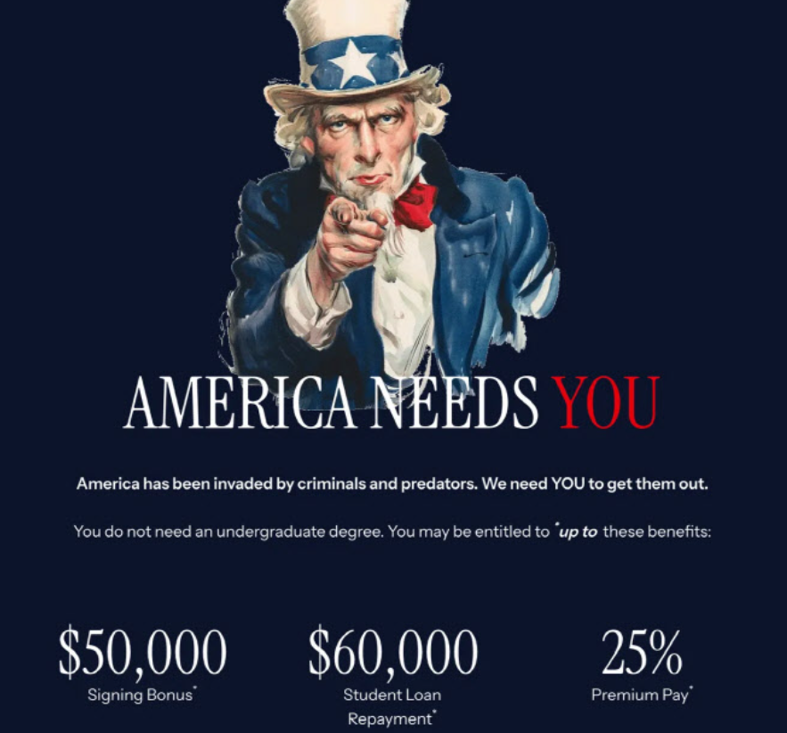 ICE offered up to $50,000 in bonuses for hiring contracts and up to $60,000 in student loan cancellation.