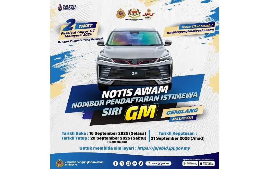 PUTRAJAYA: JPJ has opened bidding for special registration numbers with the ‘GM’ index in conjunction with Malaysia Day 2025. Read full story