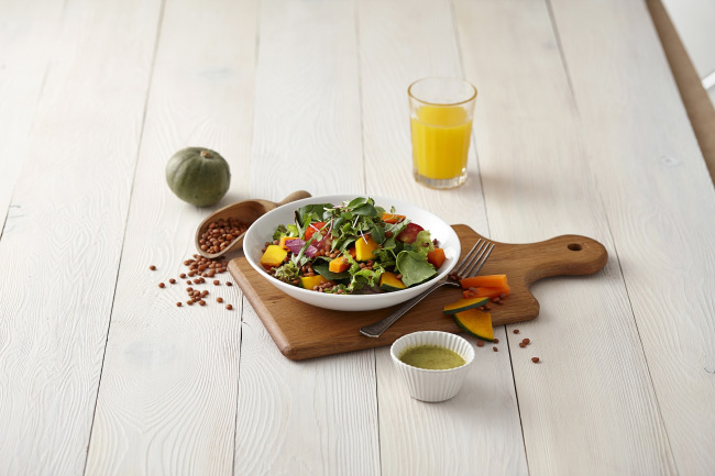 The Lentil & Sweet Pumpkin Salad has fresh spinach, red beet, chicory and beet leaf as the main ingredients with carrots, sweet pumpkin and cherry tomatoes as toppings. The lentil beans, known to help digestion and enhance immunity with both protein and fiber, stand apart with the signature citrus honey dressing, the company said.