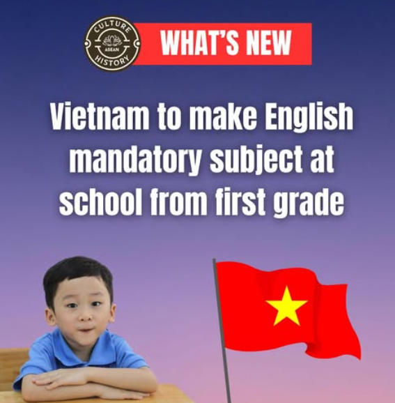 Vietnam’s Ministry of Education and Training announced that under a long-term plan to designate English as a second language in Vietnamese schools by 2045, all schools nationwide will have to teach English as a mandatory subject starting in the first grade by 2030.