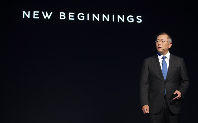 The heir apparent of the automotive group, who has led projects related to new growth engines and to global talent recruitments, made a rare presentation on the vision of Genesis brand, declaring the new beginning of Hyundai Motor.