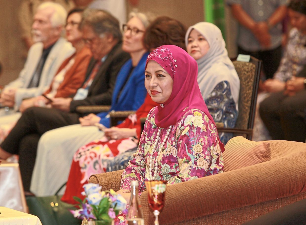 KUALA LUMPUR: Her Majesty, Raja Zarith Sofiah, Queen of Malaysia attended a breaking of the fast ceremony with members of the Cabinet and foreign delegates at Istana Negara here on Wednesday (Feb 25). Read full story