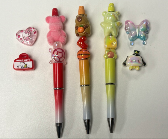 Ballpoint pen decoration is a method of combining body, beads, and charm according to preference instead of purchasing finished ballpoint pens. The craze is spreading with the addition of key cap key ring decoration, which is popular with its unique feel and clicking sound.