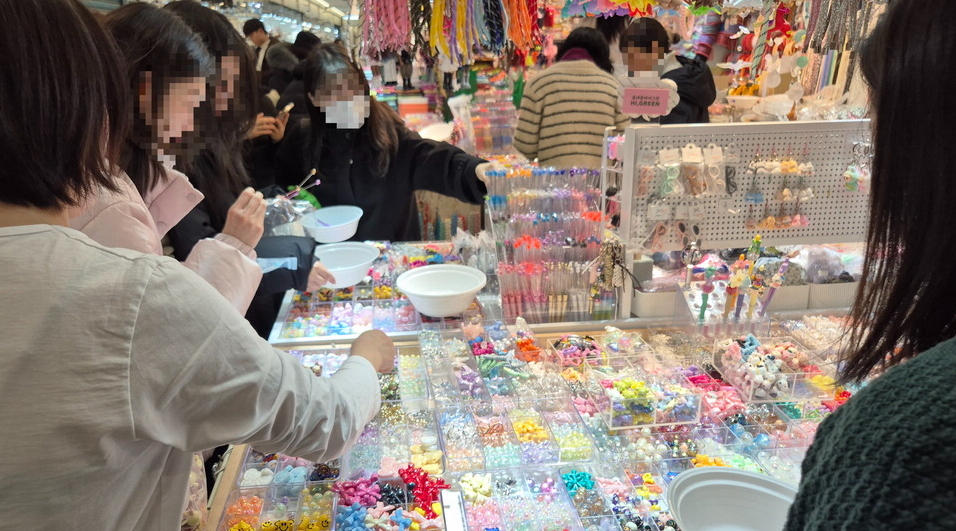 The accessory sub-material shopping mall on the fifth floor of Dongdaemun Composite Market was crowded with people who came to decorate ballpoint pens even though it was a weekday morning. Most of them are in their teens and 20s, and they were quite different from other areas that looked quite quiet.