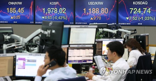In contrast, No. 1 steelmaker POSCO fell 3.33 percent to 203,000 won and top builder Hyundai Engineering & Construction plunged 8.91 percent to 36,300 won.